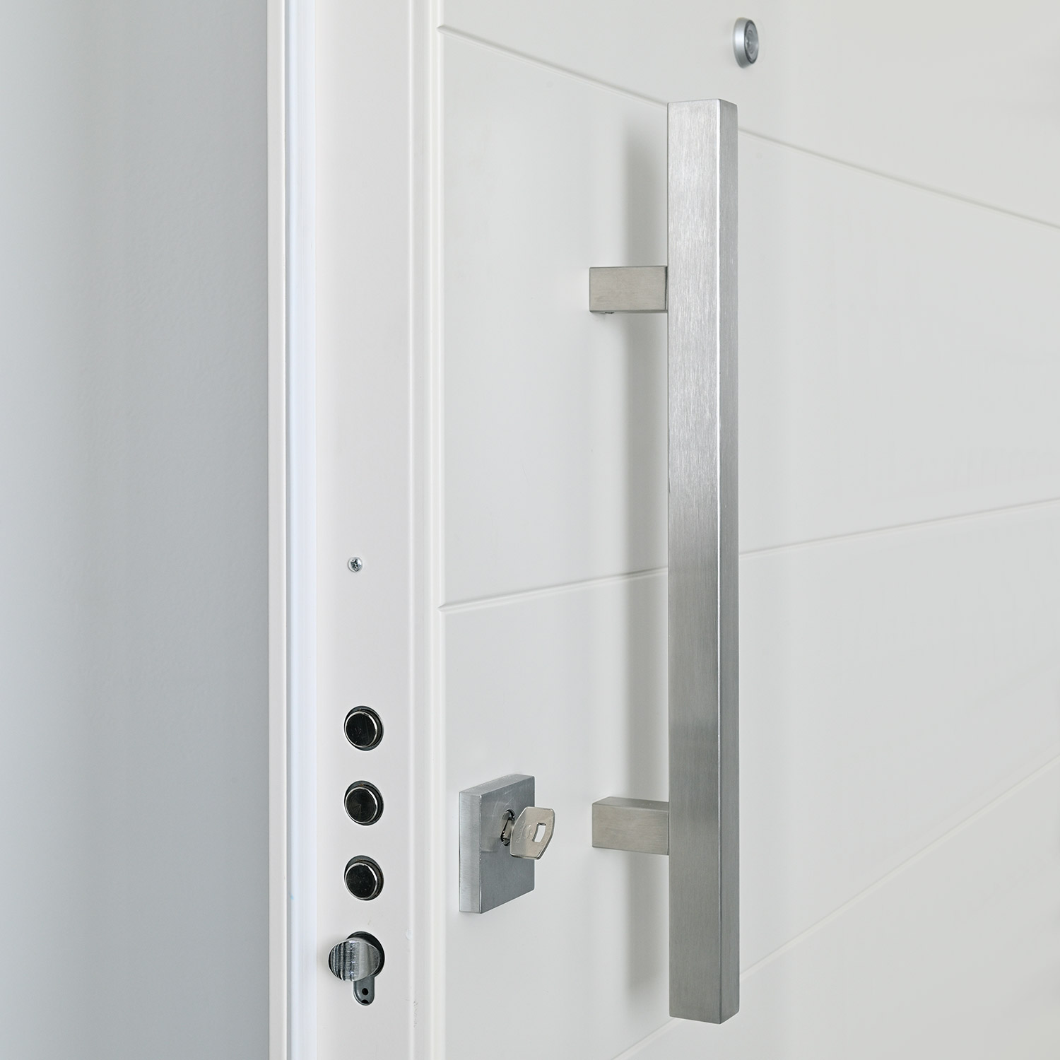 La porta blindata della serie Iron si caratterizza per il materiale del pannello esterno: l’alluminio. Questa porta è paricolarmente resistente e non temene quindi di essere esposta alle intemperie più aggressive, quali sole e pioggia. Il design liscio e pulito, ancor più valorizzato da importanti maniglioni personalizzabili, la rende adatta ad ogni tipo di contesto, dal classico all’ultramoderno.